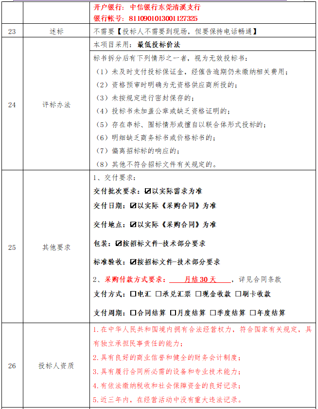 2.中标后中标方应当提供样品试样,样品经沟通后仍不满足技术要求的,取消中标资格,中标方依中标次序补递。