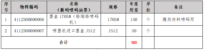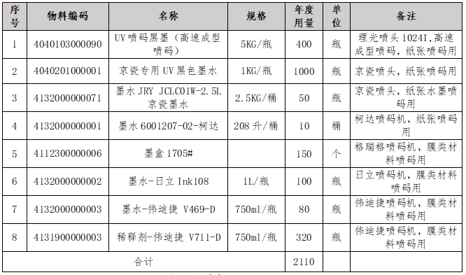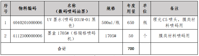 本项目为2025年数码喷码油墨年用量需求采购。