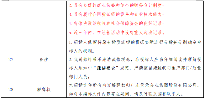 1.4供应商发现招投标活动中其他供应商或我方人员存在违法违纪行为的,都有权向广东天元实业集团股份有限公司进行举报,举报邮箱