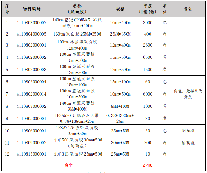 本项目为2025年双面胶年用量需求采购。